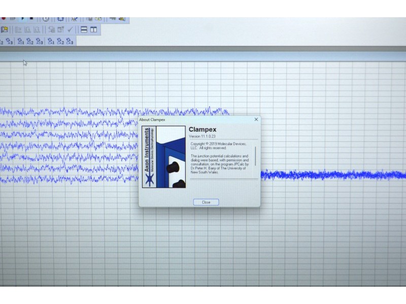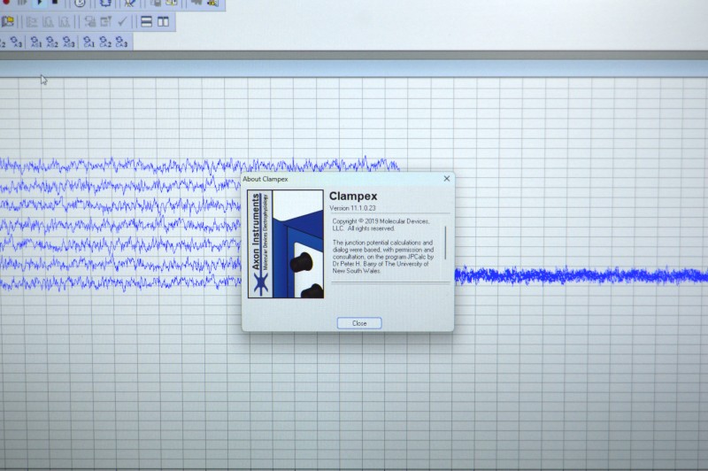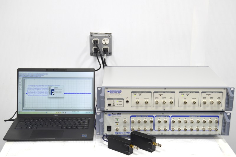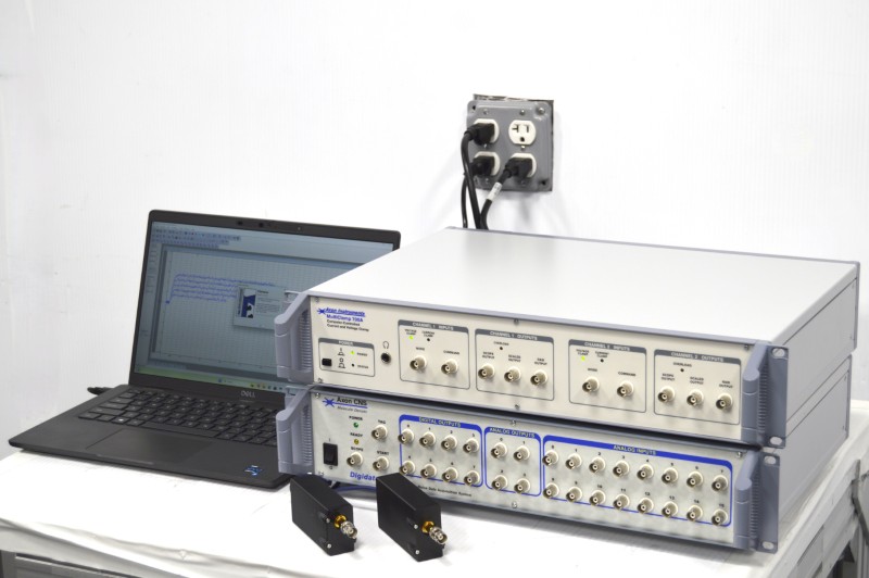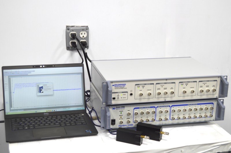 Axon MultiClamp 700A Patch Clamp Amplifier with two head stages, Axon DigiData 1440A Digitizer, and pCLAMP11