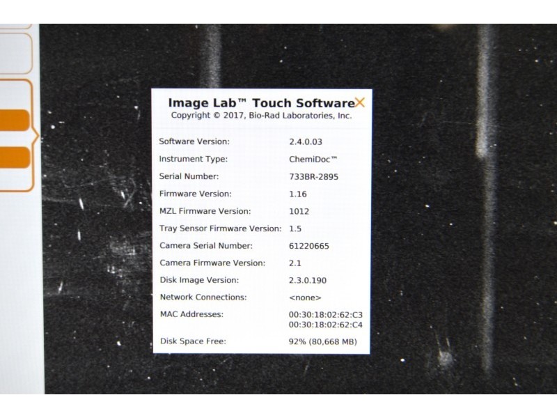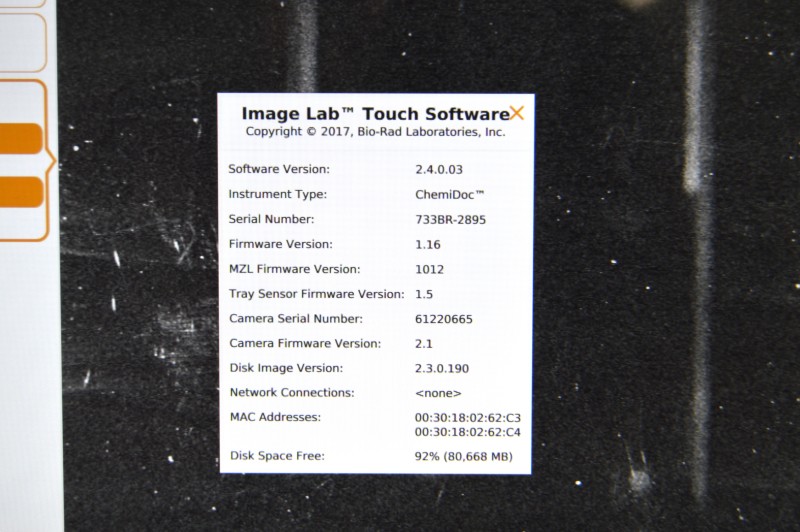 Bio-Rad ChemiDoc Imaging System Configuration: