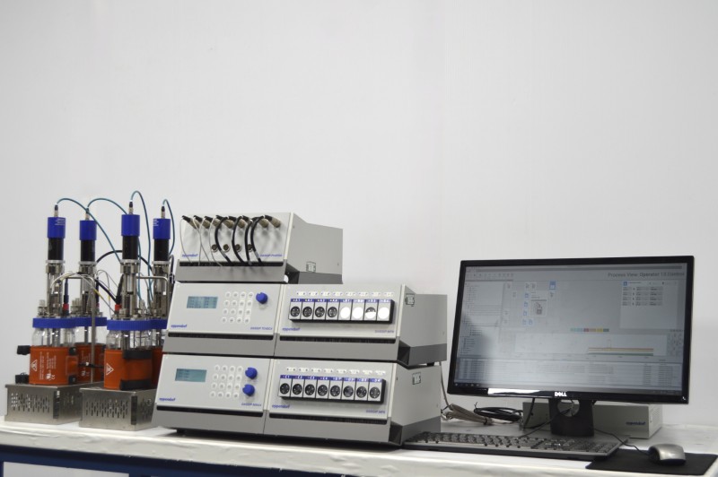 - Eppendorf DASGIP Parallel Bioreactor System for Cell Culture, 4-fold setup enabling parallel experiments with up to 50 sL/h gas flow.