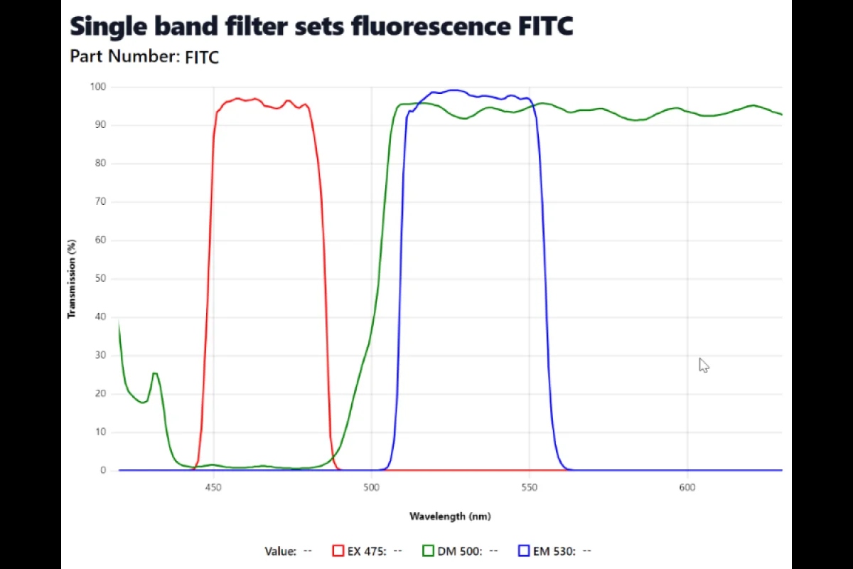 - New filter set - EGFP/FITC/Cy2 (EX: 475/30nm, DM: 500nm, EM: 530/40nm) (Dye compatibility: EGFP/FITC/Cy2/AlexaFluor 488)