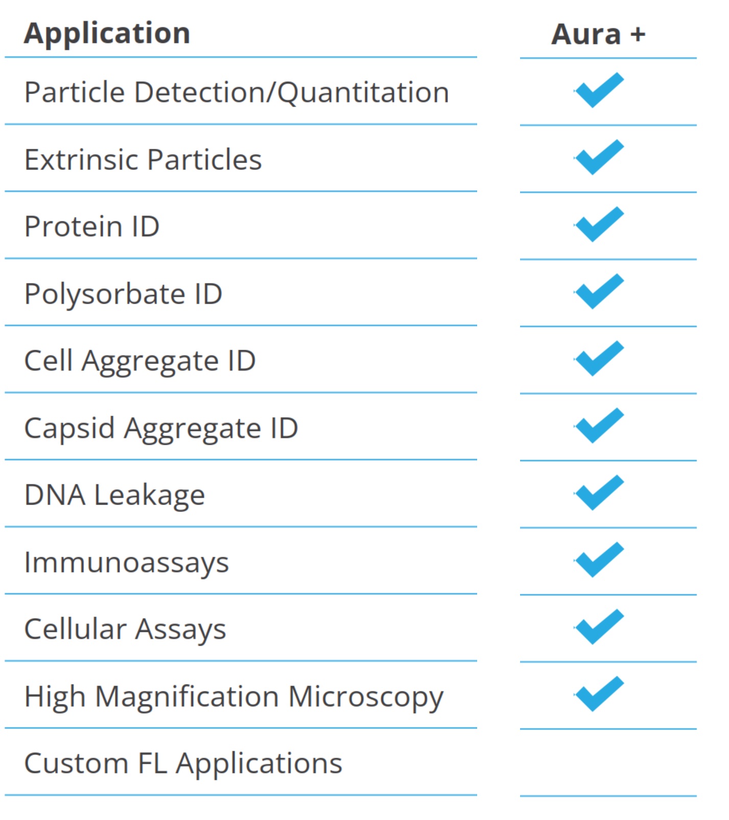 - Aura+ enables the detection, counting, and characterization of protein, cell, and gene therapy particles with a 5 μL sample.