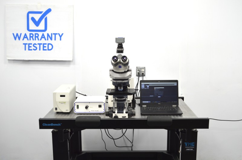 For Sale Zeiss Axio Examiner.D1 Fluorescence Dodt Gradient Contrast Upright Water Dipping Microscope with Anti-Vibration Table
