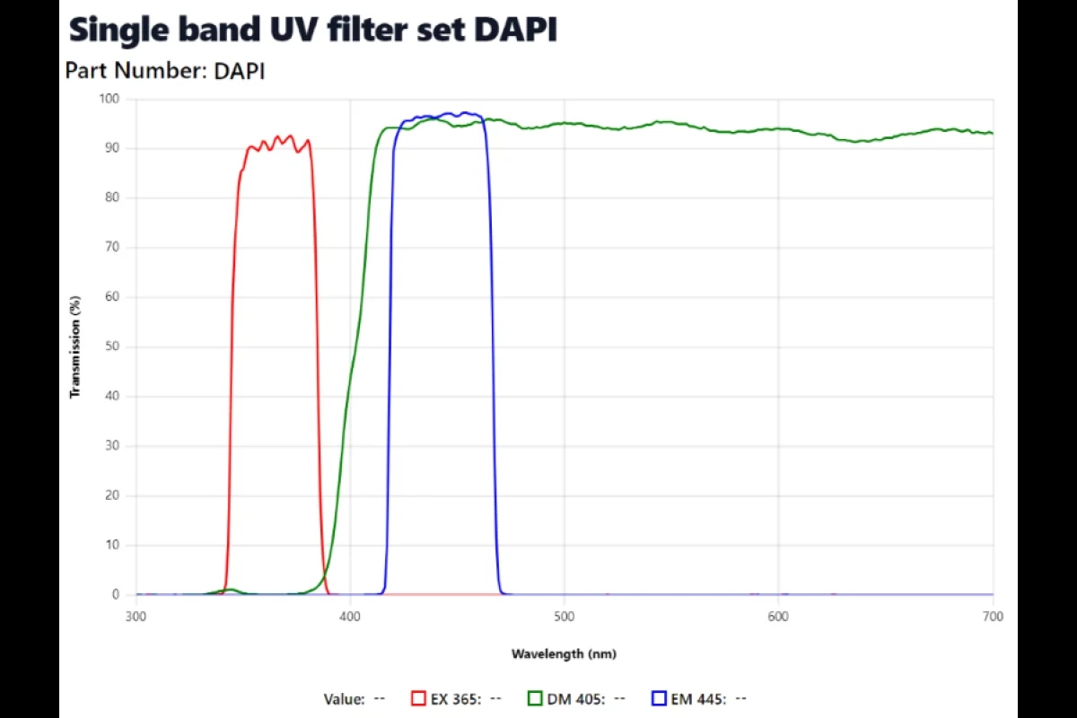 - New filter set - DAPI (EX: 365/28nm, DM: 405nm, EM: 445/50nm) (Dye compatibility: DAPI/Hoechst/AlexaFluor 350)